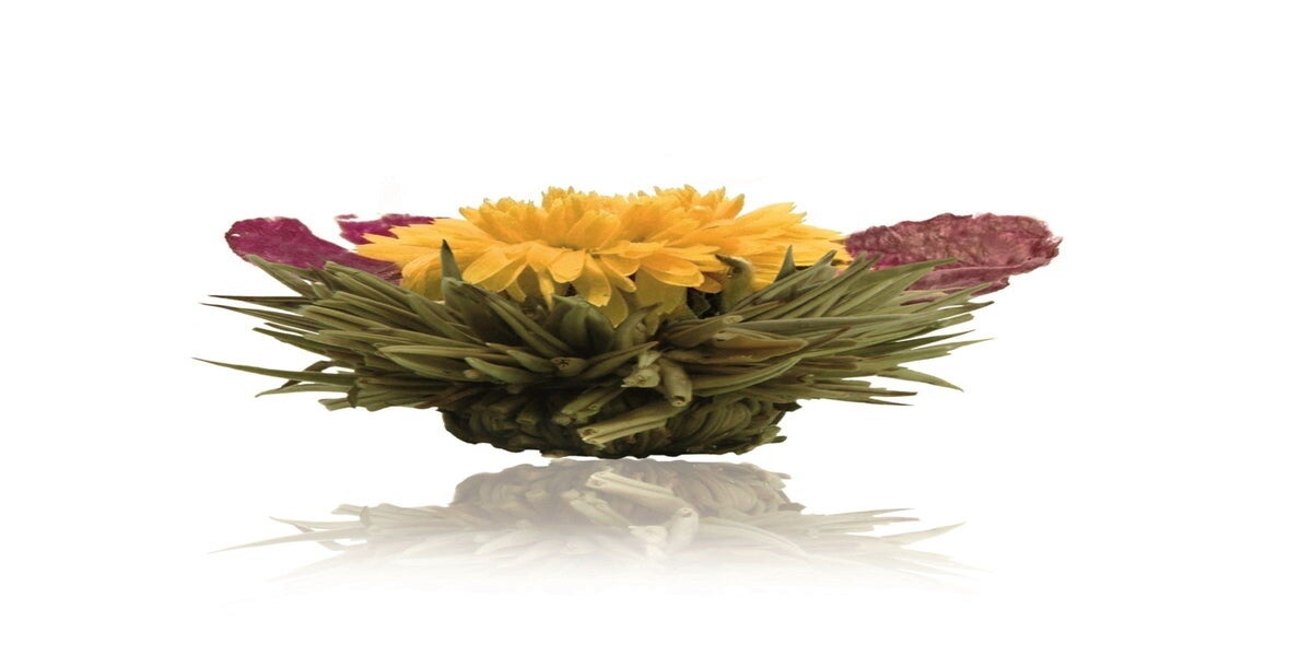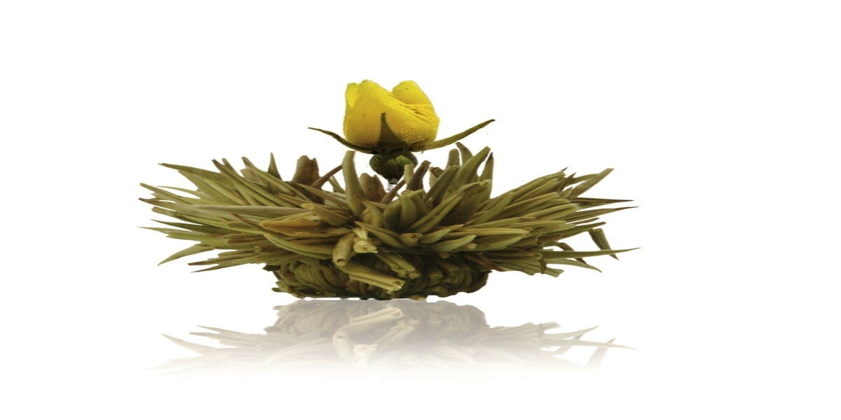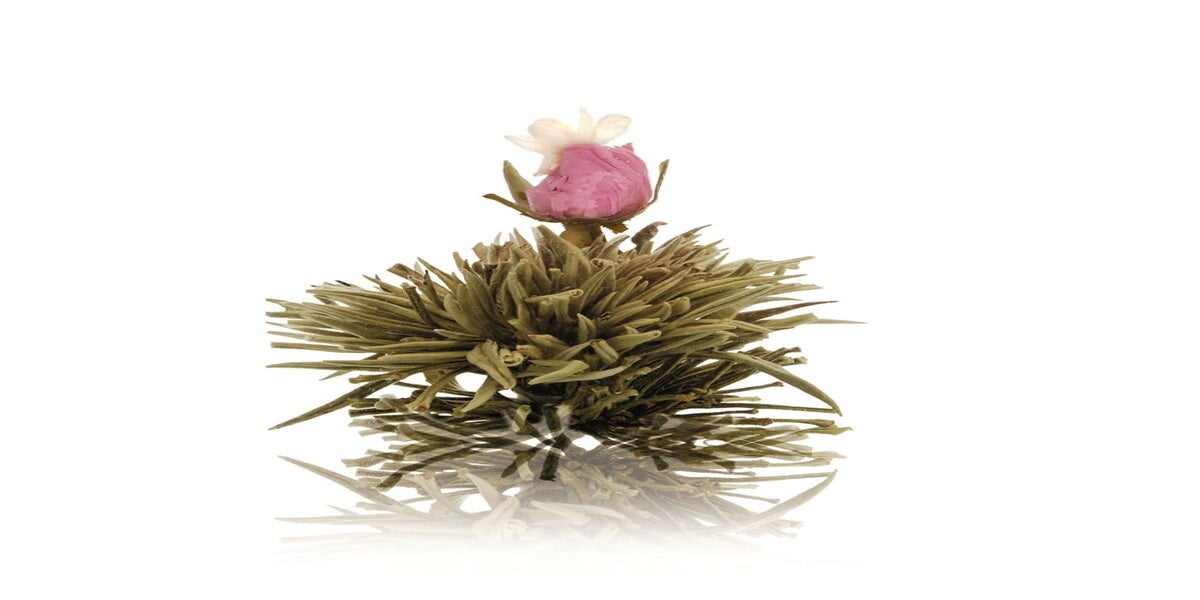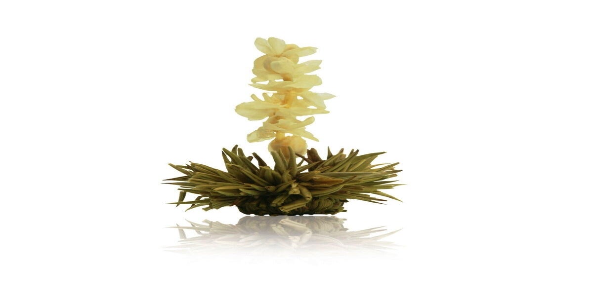 Wanneer een theebloem in aanraking komt met kokend water, ontvouwt deze zich geleidelijk tot een prachtige bloem.